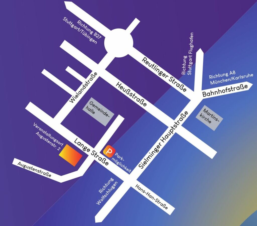 Die Eingangstür des Vereinshauses befindet sich in der Augustenstraße 2. Folge der Lange Straße, bis du das Vereinshaus mit dem Banner an der Stirnseite siehst. Der Parkplatz befindet sich auf der gegenüberliegenden Straßenseite neben Gebäude Lange Straße 6.